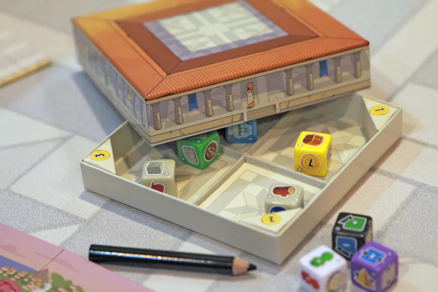 Il cherche à proposer une version plus courte, plus fluide et plus facile à sortir de 7 Wonders, en remplaçant le draft par une gestion de dés et de cochage. Simple, direct, assumé.