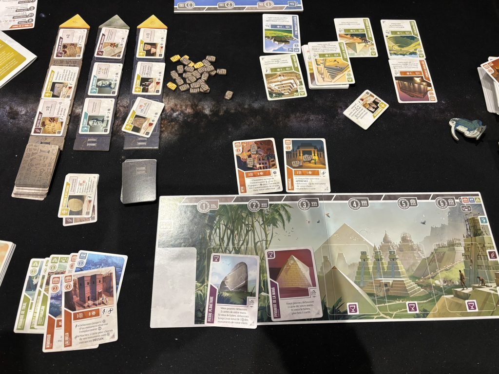 Ancient Knowledge a une très bonne idée… et beaucoup trop de temps pour l’exploiter. Sa frise temporelle, élégante et originale, illustre avec intelligence l’érosion du savoir : ce que l’on construit finit inévitablement par disparaître. Sur le papier, c’est brillant. Dans les faits, le jeu déploie une montagne de cartes, de combos et de micro-optimisations qui flatteront les amateurs d’engine-building, mais au prix d’un rythme qui s’essouffle vite.