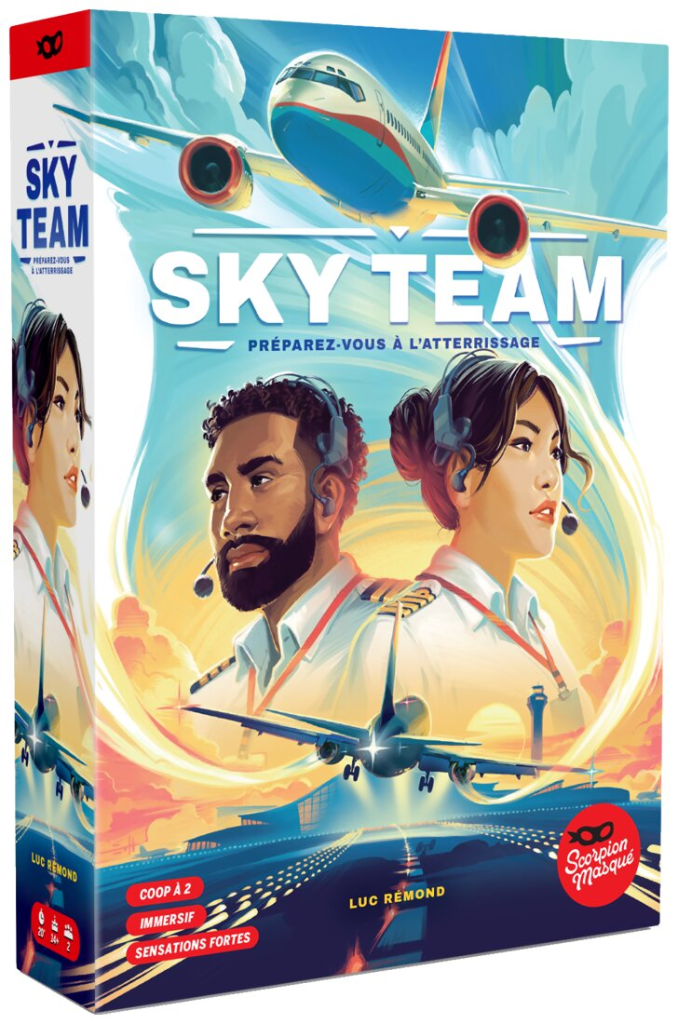 Un avion doit atterrir en silence. Pilote et copilote lancent leurs dés à l’aveugle, puis placent chacun en secret. Une coordination tendue où chaque choix est lourd de conséquences. Minimaliste mais intense, avec modules (vent, kérosène…) qui varient la difficulté. Ultra immersif, récompensé par Spiel des Jahres 2024.