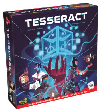 Tesseract est un jeu coopératif de manipulation de dés pour 1 à 4 joueurs. Le point central du jeu est un bloc de 64 dés, le Tesseract, qui se trouve au centre du plateau sur une plate-forme surélevée. Les joueurs retirent des cubes pour les placer dans leurs laboratoires respectifs, les transfèrent au besoin à d’autres, ajustent les valeurs des cubes et, surtout, isolent les cubes dans la matrice de confinement, les neutralisant.