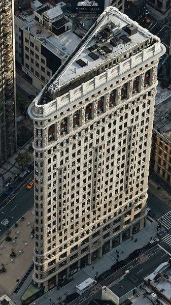 Construit en 1902, il se dresse au croisement de Broadway, la 5e Avenue et la 23e rue, sur une parcelle triangulaire qui lui a donné son surnom : “le fer à repasser” (flat iron en anglais).