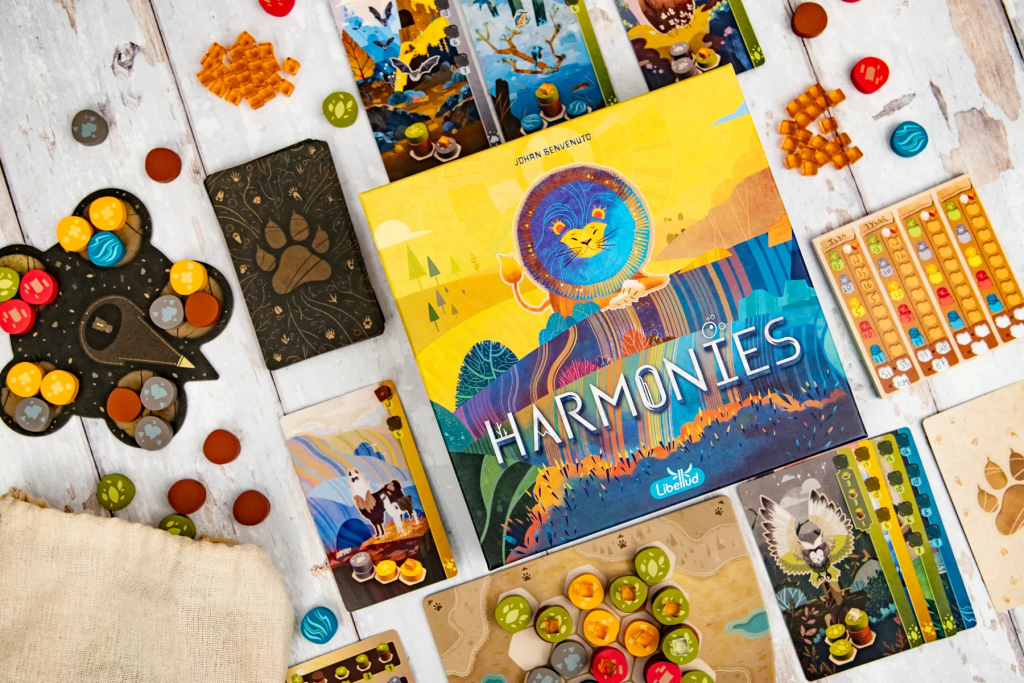 Harmonies est simple à jouer mais demande une vraie vision spatiale : mal placer un groupe de trois jetons peut bloquer des synergies ou empêcher la validation d’un animal important.