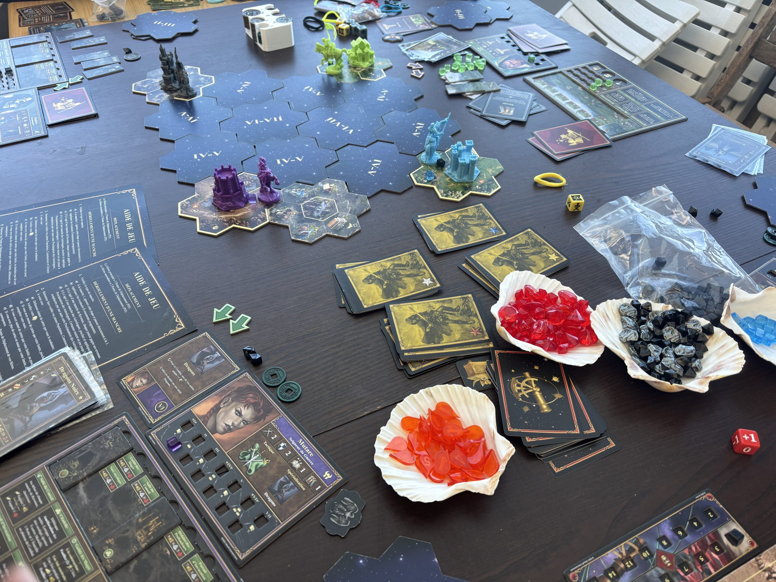 On a joué à 3. Oui, à 3. Et je peux dire un truc sans trembler : c’était long. Pas désagréable, pas raté, mais long comme un dimanche pluvieux sans Wi-Fi. Le jeu demande de la place, de la mise en place, de la relance, et encore de la place. On avance, on explore, on optimise… et on attend que les autres fassent pareil. C’est le deal.