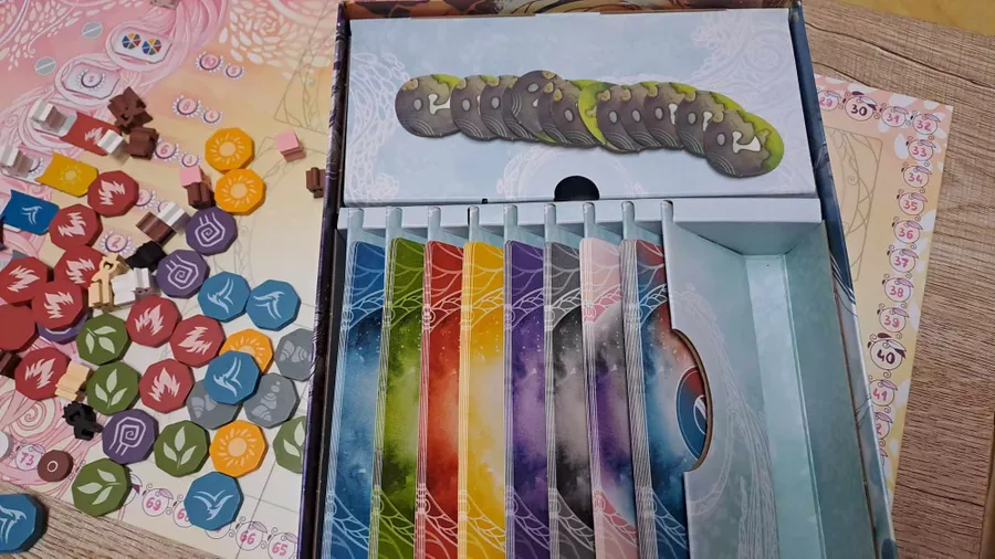 Inori s’installe sans forcer. Beau, zen, parfaitement rangé, il dégage d’emblée cette élégance tranquille propre aux jeux bien édités. La mise en place est fluide, la lecture claire, la première manche presque apaisante. On se dit que tout va rouler. Et c’est exactement là que le jeu commence à resserrer l’étau.