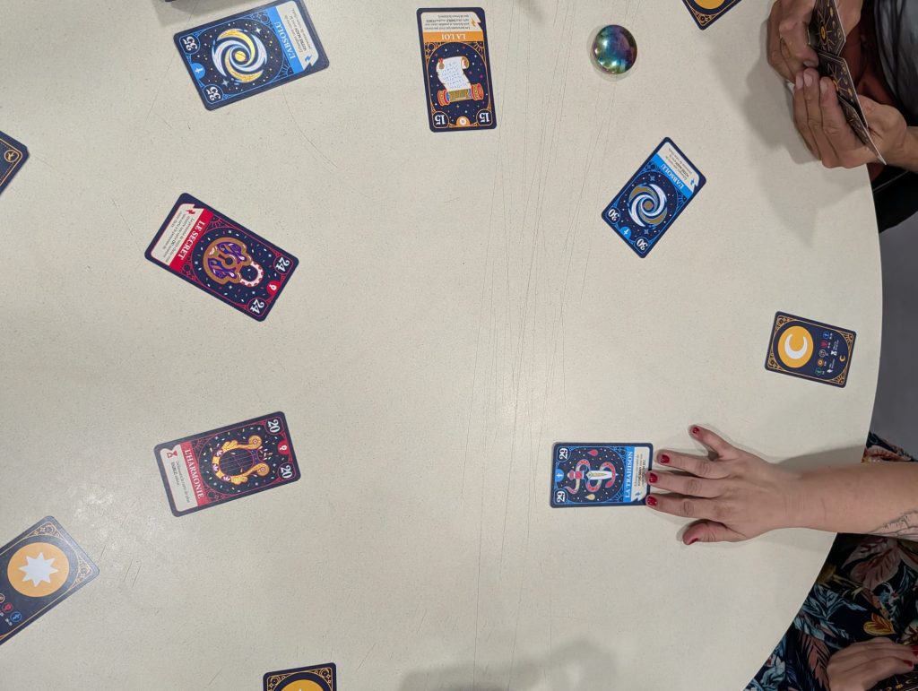 Présages est un jeu de cartes ésotérique qui mêle défausse et jeu de plis tordu.